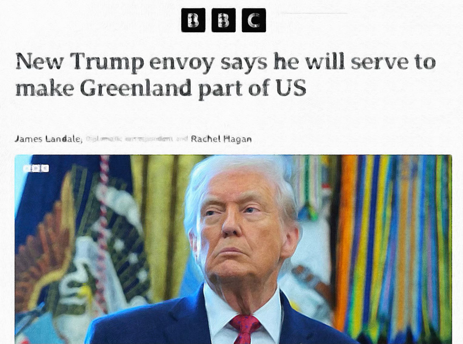 A headline from BBC News, on December 22, 2025, says: “New Trump envoy says he will serve to make Greenland part of US”